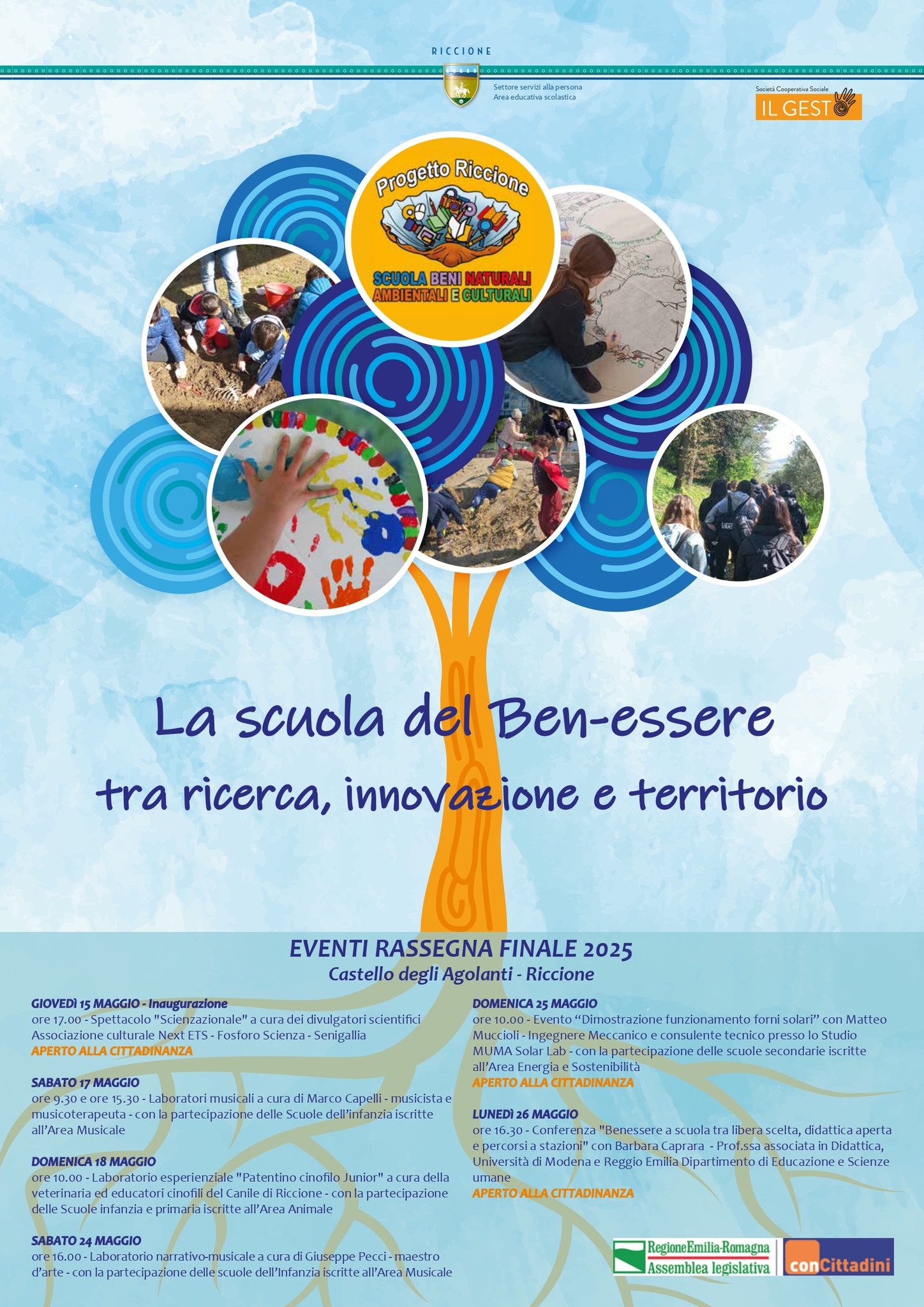 Giovedì 15 maggio inaugura al Castello degli Agolanti (viale Caprera) la rassegna conclusiva del Progetto speciale Riccione Scuola Beni naturali ambientali e culturali, giunto alla sua 41ª edizione.