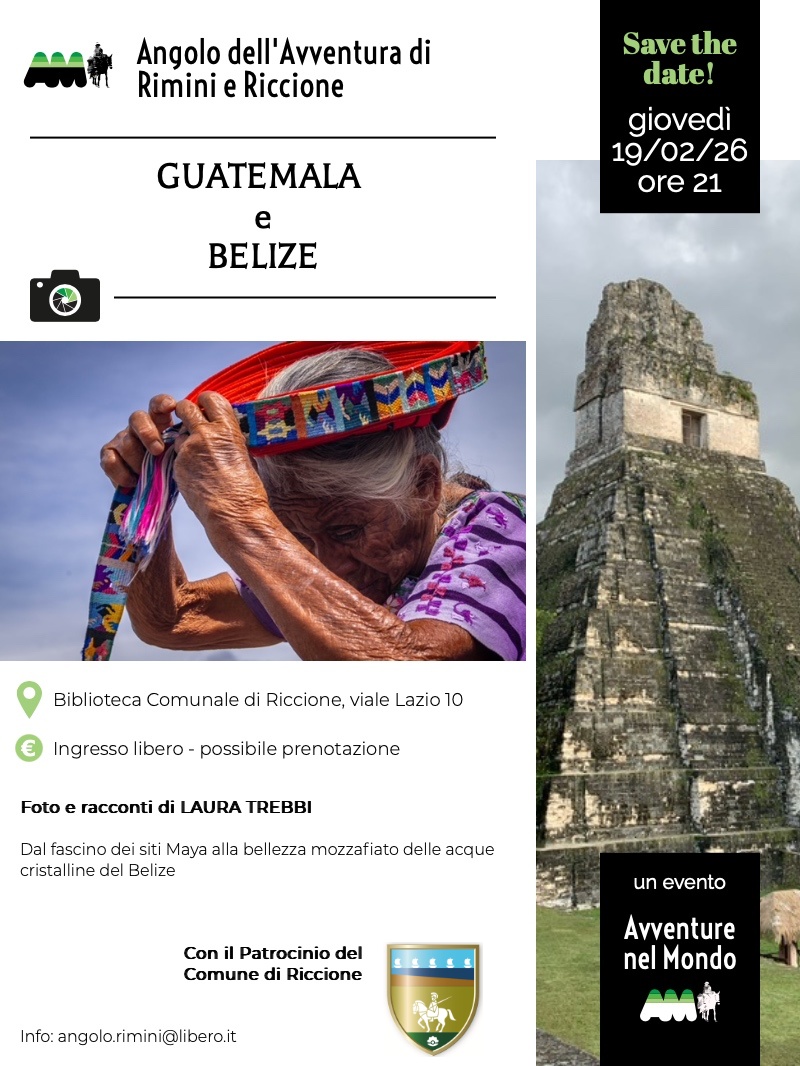 Mercoledì 19 febbraio, Laura Trebbi condurrà il pubblico alla scoperta di Guatemala e Belize. Il reportage si focalizzerà sul Guatemala, un Paese dove la natura domina il paesaggio e la storia millenaria dei Maya respira ancora in ogni angolo.