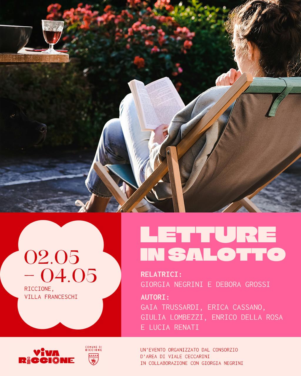 Dal 2 al 4 maggio Riccione ospiterà la prima edizione di “Lettura in Salotto”, una nuova rassegna letteraria patrocinata dal Comune di Riccione e organizzata dal Consorzio d’area di Viale Ceccarini.