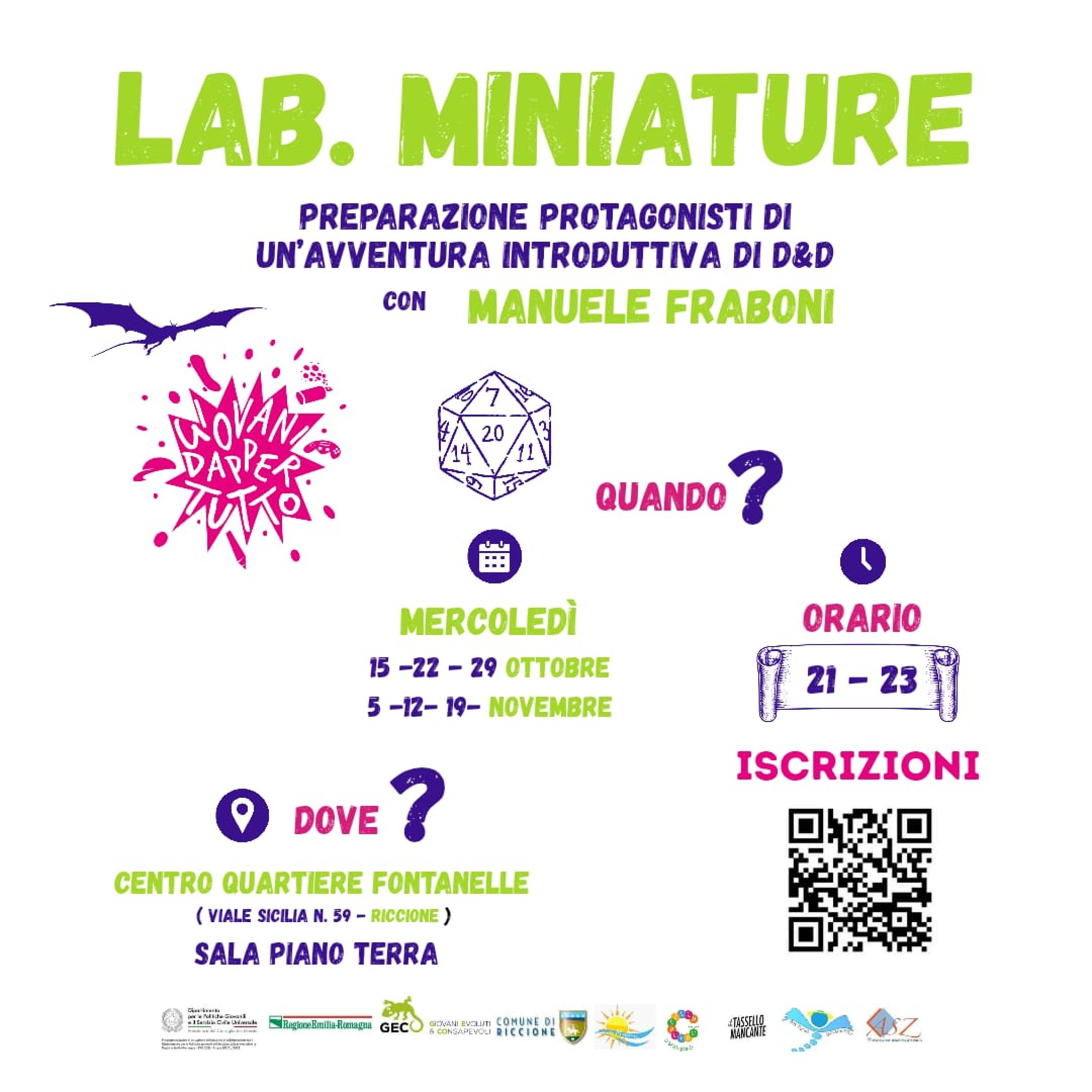Dopo il successo dei laboratori estivi, prosegue anche in autunno il progetto “Giovani dappertutto”, promosso dall’Assessorato ai Servizi alla Persona – Politiche Giovanili in collaborazione con gli enti del terzo settore. Il progetto propone due laboratori gratuiti, aperti ai ragazzi tra i 15 e i 34 anni, residenti nel Comune di Riccione e nel territorio provinciale. I laboratori, intitolati Caviardage e Miniature, si svolgeranno rispettivamente presso la Biblioteca comunale e la sala di quartiere Fontanelle, nei mesi di ottobre e novembre.