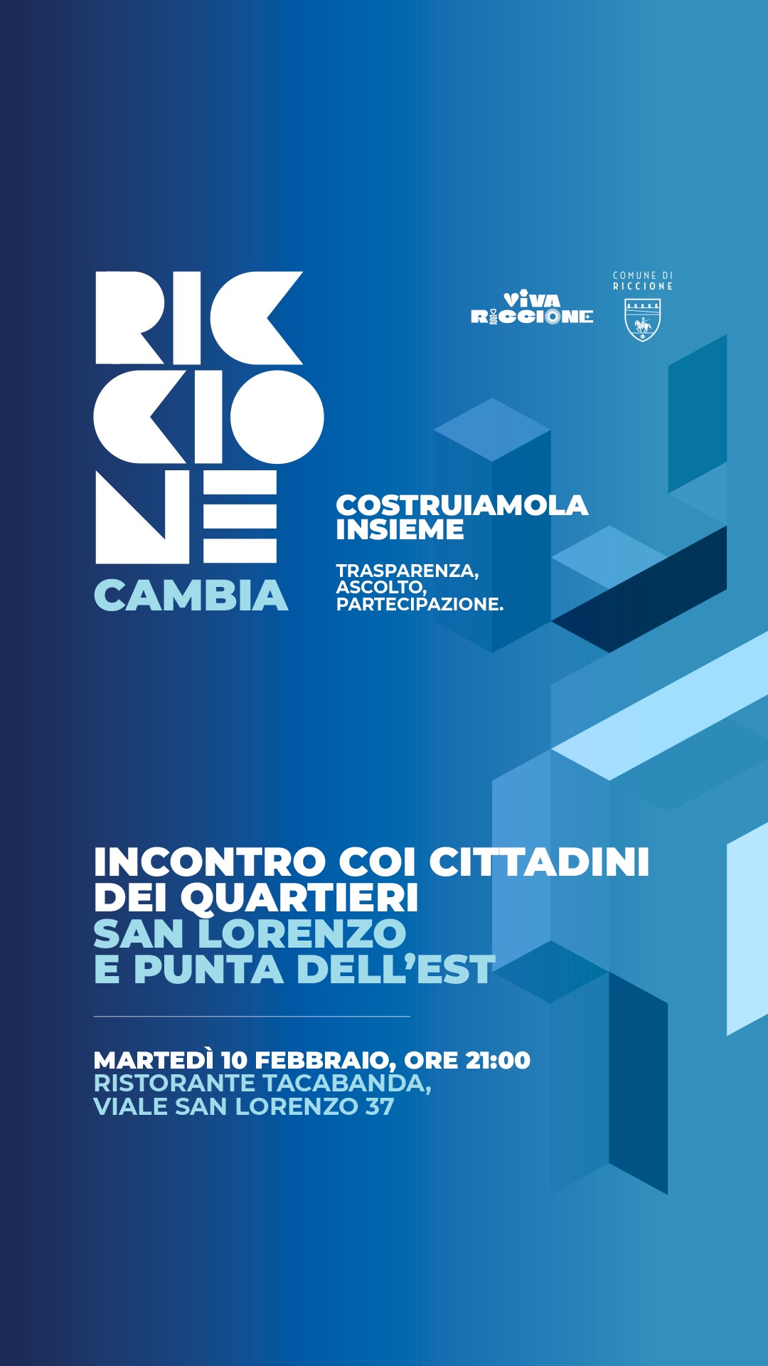 Una sala affollata e un dialogo aperto hanno segnato il debutto di “Riccione cambia – Costruiamola insieme”, il ciclo di incontri della Giunta comunale nei quartieri. Martedì sera, presso il Centro di Quartiere di viale Sicilia, la sindaca Daniela Angelini e la squadra di governo della città hanno presentato la visione della Riccione di domani: una città che rigenera non solo gli spazi, ma anche il tessuto sociale ed economico.