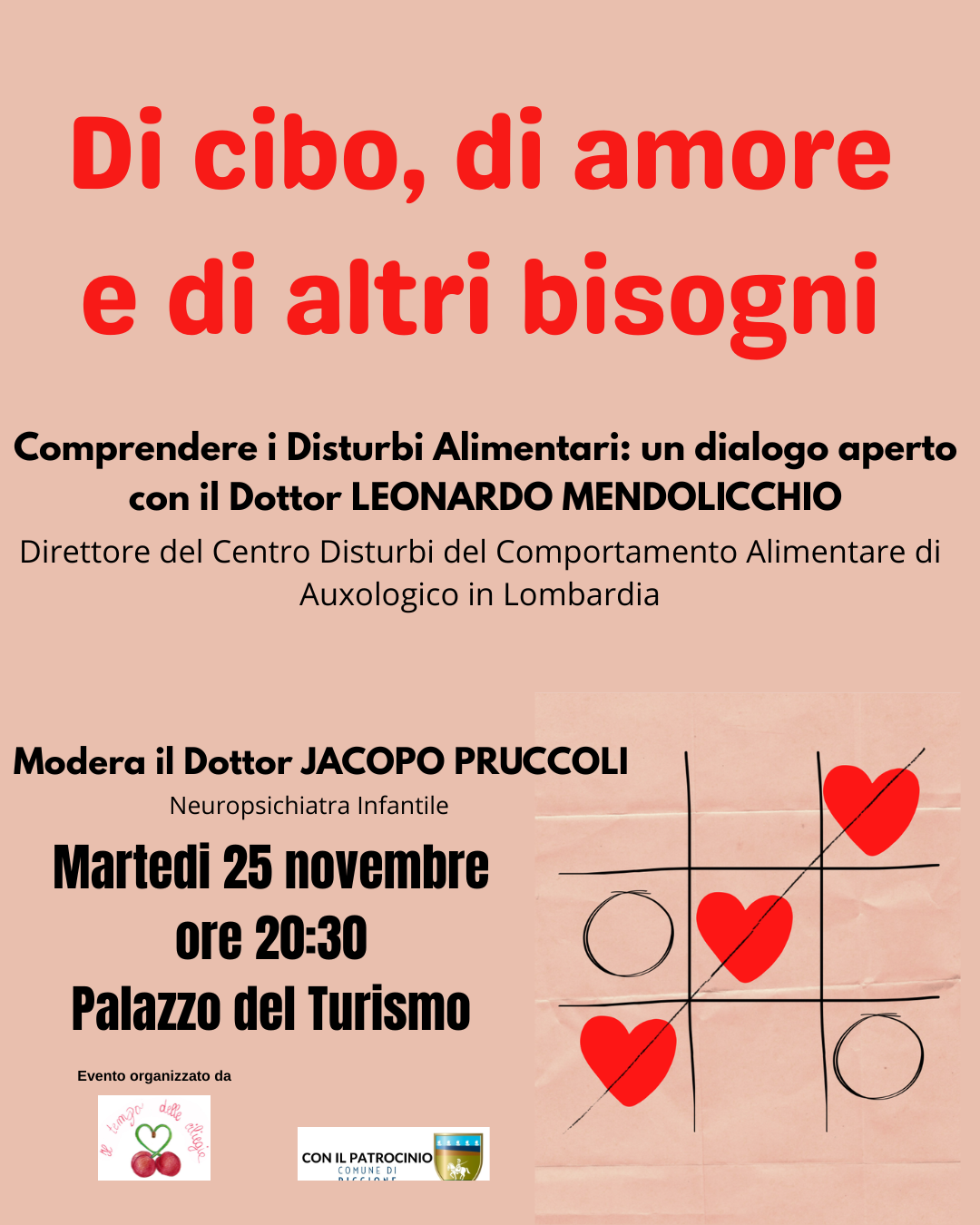 Sarà ospite il noto psichiatra e psicoanalista Leonardo Mendolicchio, specializzato nella cura dei Disturbi del Comportamento Alimentare (DCA), moderato dal neuropsichiatra infantile Jacopo Pruccoli.