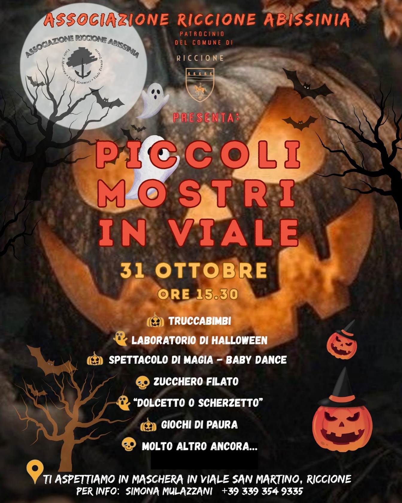 L’iniziativa, organizzata dall’associazione Riccione Abissinia e patrocinata dal Comune di Riccione, animerà la piazzetta con un pomeriggio interamente dedicato al divertimento dei più piccoli. A partire dalle 15:30, l’area si trasformerà in un colorato scenario popolato da piccoli mostri, streghette e fantasmi, tra truccabimbi, laboratori creativi, spettacoli di magia e momenti di baby dance che faranno ballare e sorridere grandi e piccini. Non mancheranno le dolcezze, con zucchero filato, sorprese di “dolcetto o scherzetto” e giochi da brivido pensati per rendere unica l’atmosfera di Halloween.