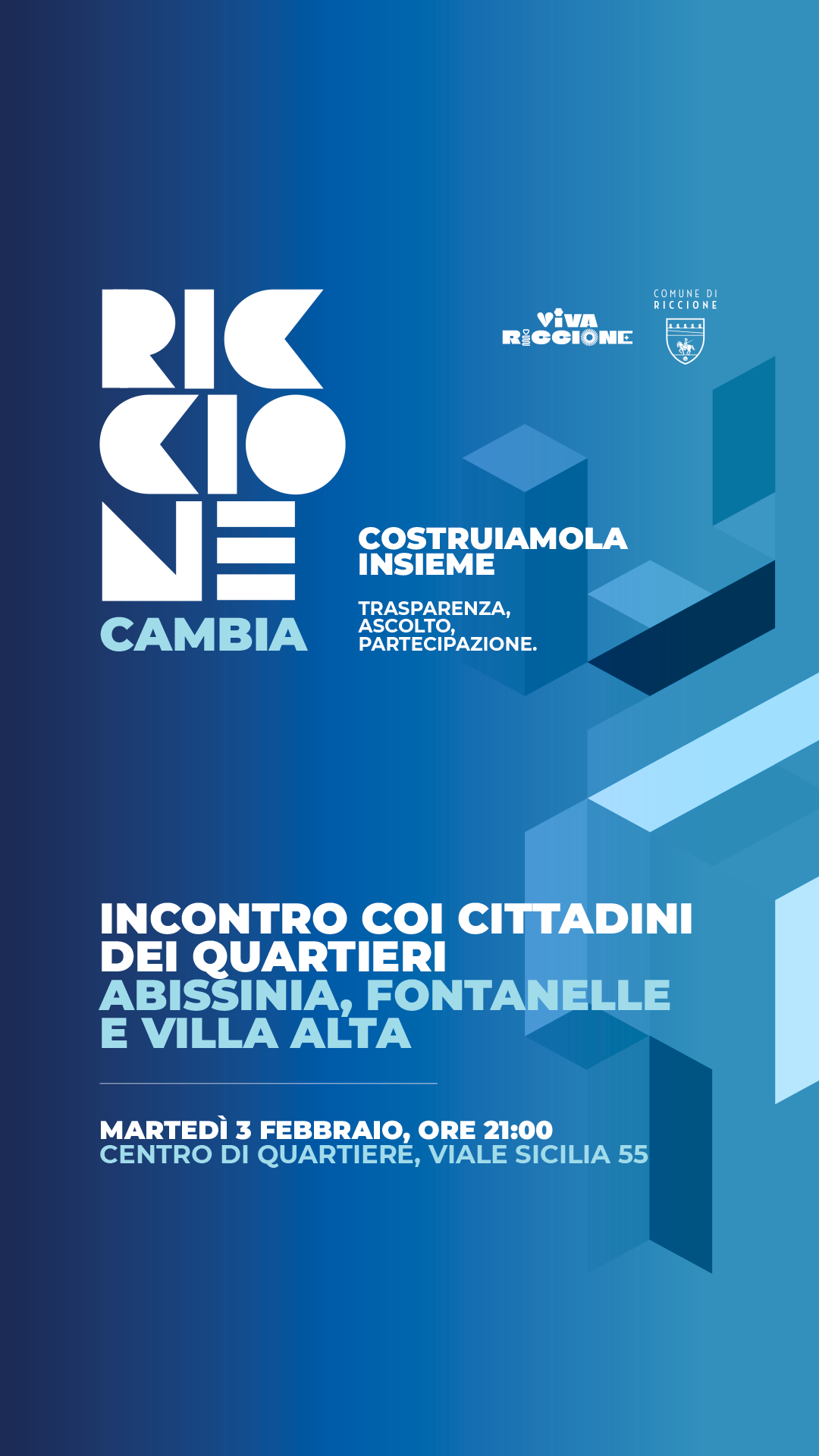 Prenderà il via martedì 3 febbraio il ciclo di incontri “Riccione cambia – Costruiamola insieme” con la sindaca Daniela Angelini e la Giunta comunale.