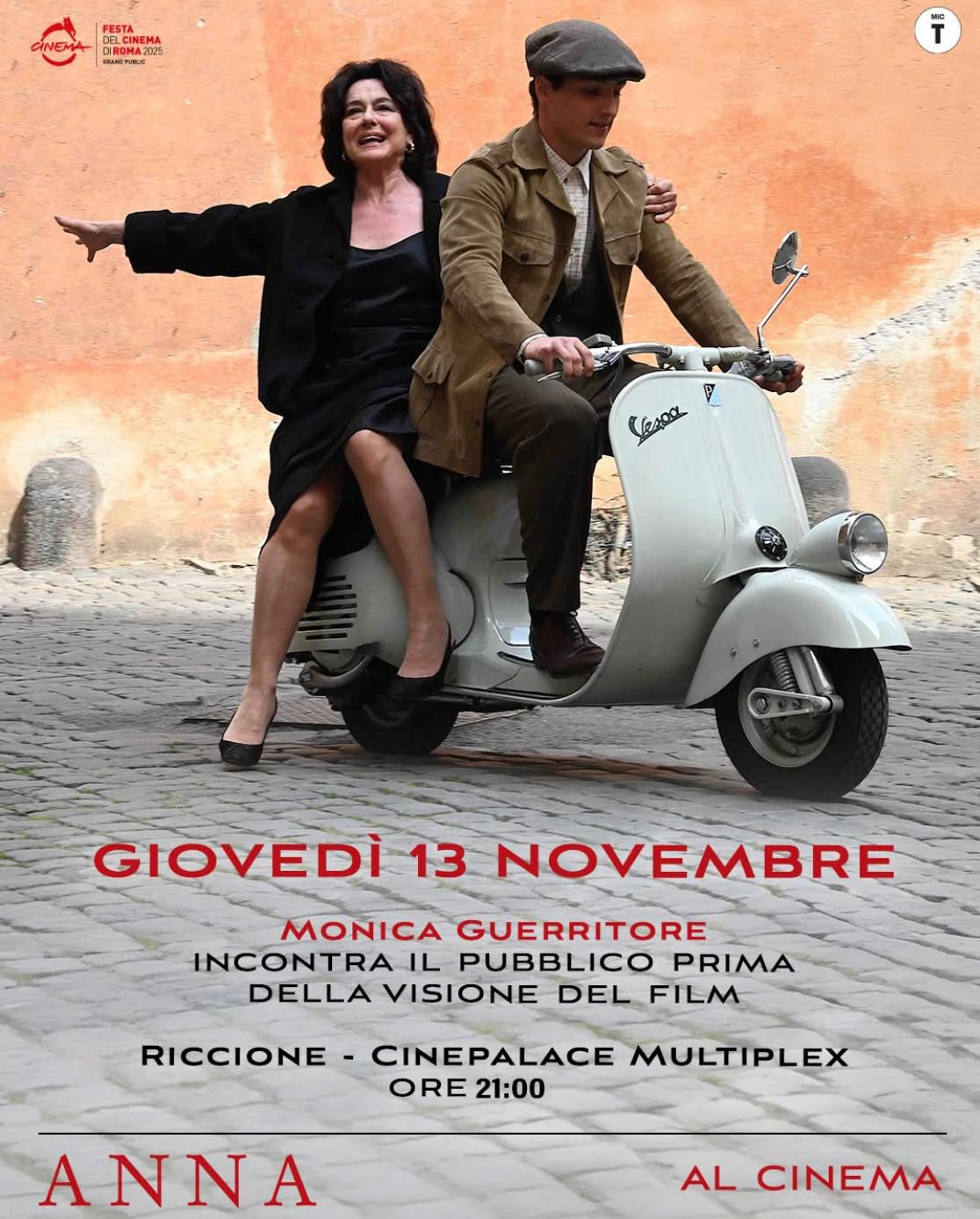 Questa sera, giovedì 13 novembre (ore 21), al Cinepalace Giometti di Riccione, per la rassegna “Riccione cinema d’autore”, Monica Guerritore incontrerà il pubblico in sala, prima della proiezione del suo film “Anna”, da lei scritto, diretto e interpretato.